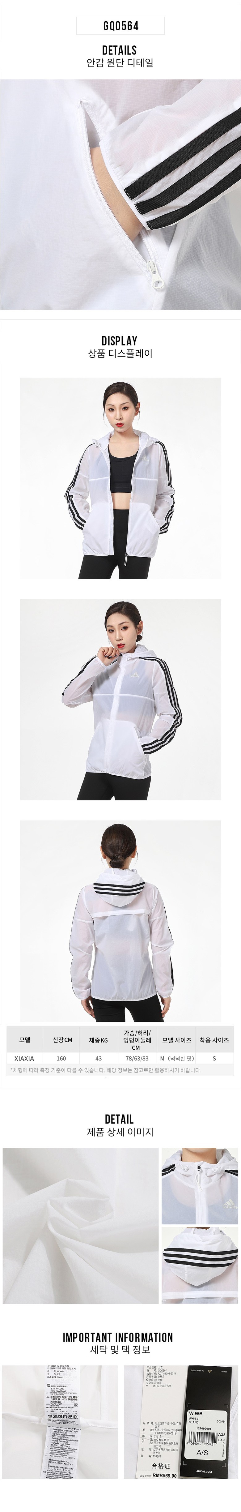 아디다스 여성용 스포츠 후드 집업 자켓 GQ0564