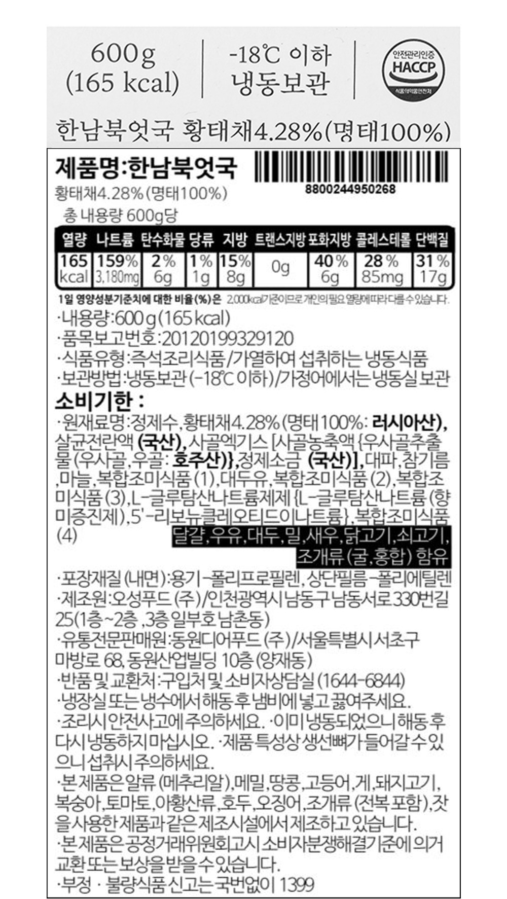 | 생산자 및 소재지 | 컨텐츠 참조 | 제조연월일, 소비기한 또는 품질유지기한 | 업데이트 예정 |