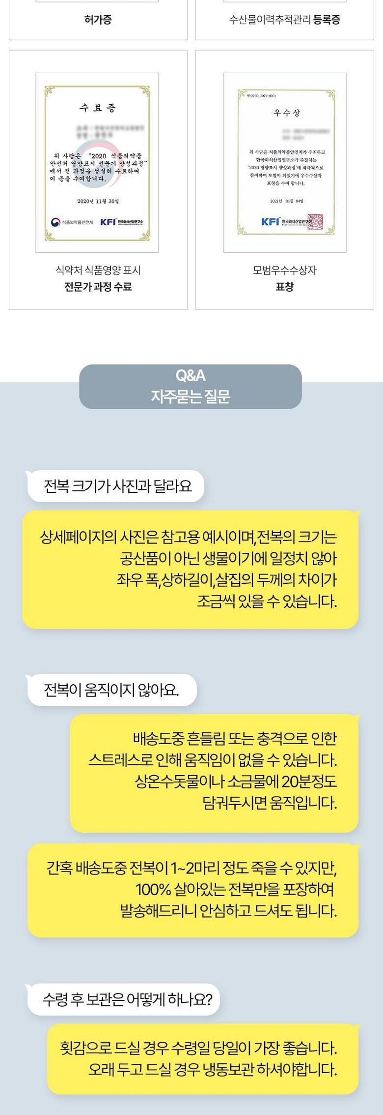 | 품목 또는 명칭 | 완도 활 전복 | 포장단위별 내용물의 용량(중량),수량,크기 | kg |