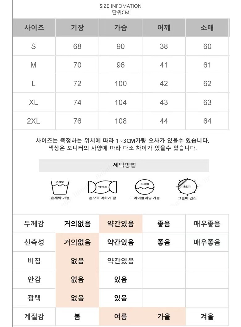 | 제조국 | 중국 | 세탁방법 및 취급시 주의사항 | 상품 상세페이지 참조 |