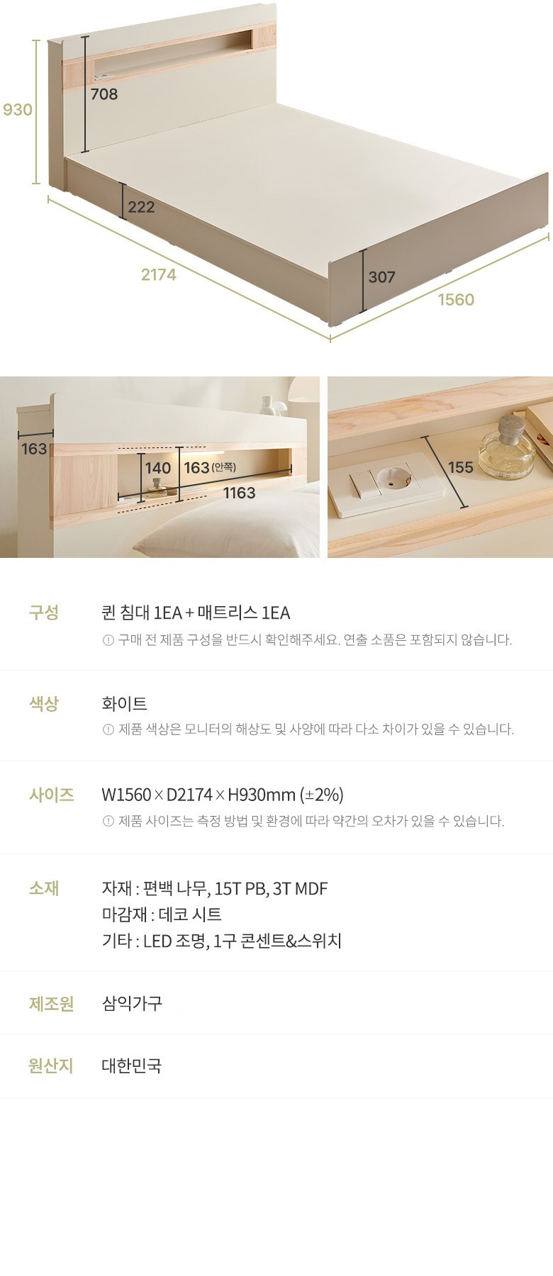 | 품명 | 삼익가구 그레인 호텔식 편백나무 LED 조명 침대 + 매트리스 /SKD-T5-20 | KC 인증정보 | 본품 : 해당없음 / LED등 : JU11367-19001A, R-R-Sl2-SKD-T5-20 / 콘센트 : SB04003-17001, KSC8305 제 17-0003호 |