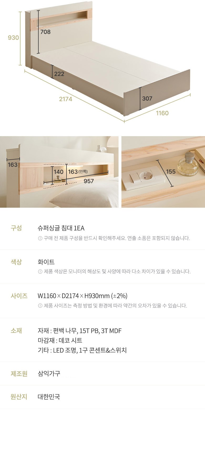 | 품명 | 삼익가구 그레인 호텔식 편백나무 LED 조명 침대 /SKD-T5-20 | KC 인증정보 | 본품 : 해당없음 / LED등 : JU11367-19001A, R-R-Sl2-SKD-T5-20 / 콘센트 : SB04003-17001, KSC8305 제 17-0003호 |
