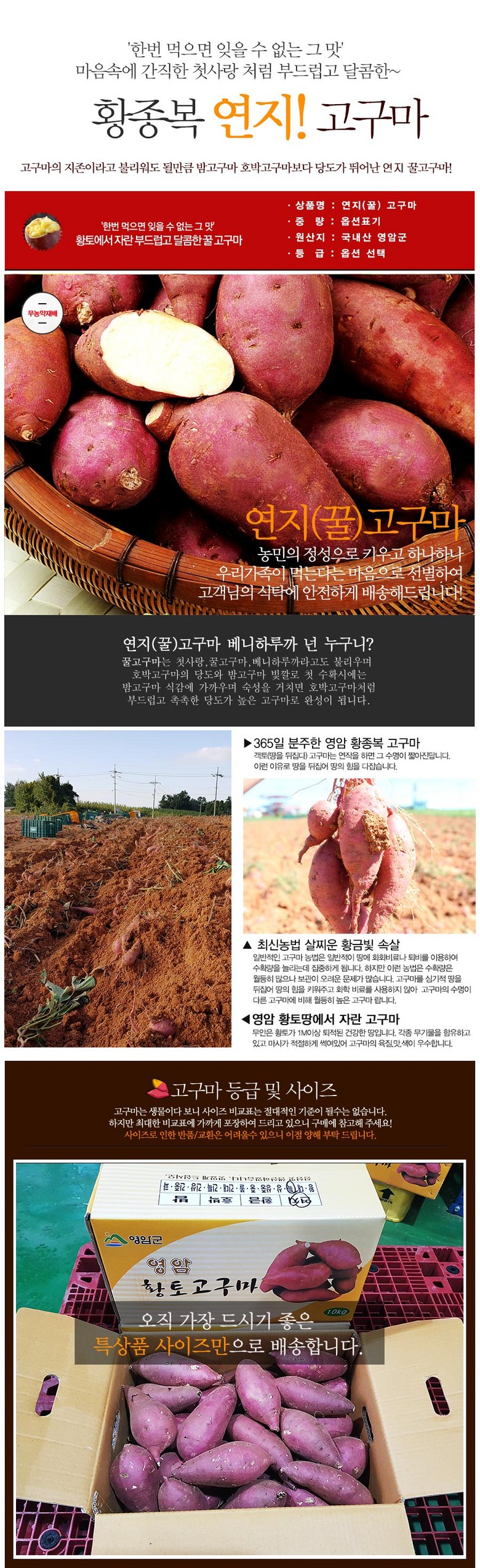 중량 × 수량: 황종족연지 꿀고구마10kg(특품/군고구마용) × 1개