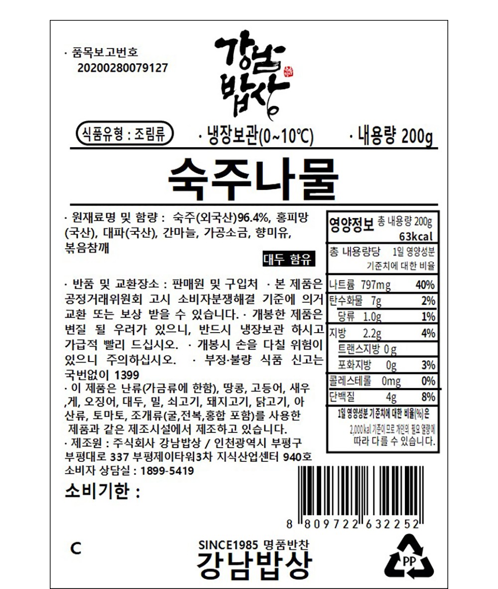 | 제품명 | 숙주나물 | 식품의 유형 | 컨텐츠 참조 |