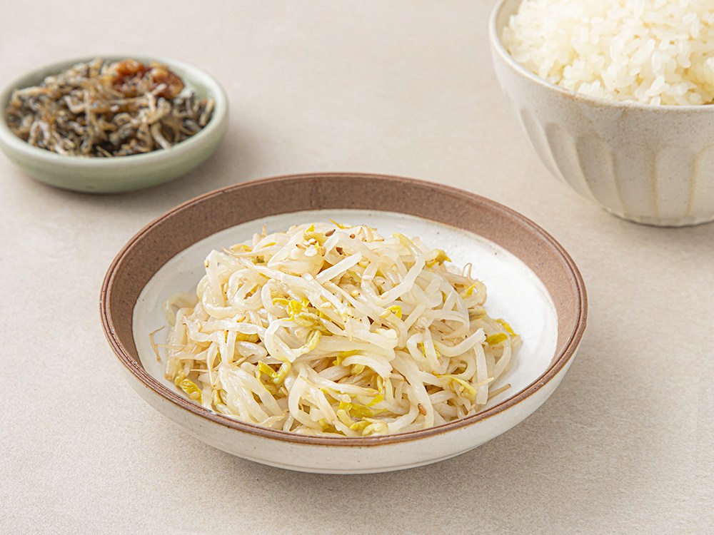 고소한 나물 반찬으로 식탁 위를 풍성하게 꾸며보세요. 아삭한 식감이 좋은 숙주나물에 짭조름한 간을 더해 맛있게 만들었답니다. 그릇에 옮겨 담기만 하면 바로 즐길 수 있어 간편하지요. 그대로 드셔도 좋고, 비빔밥의 재료로 활용해도 잘 어울릴 거예요.
