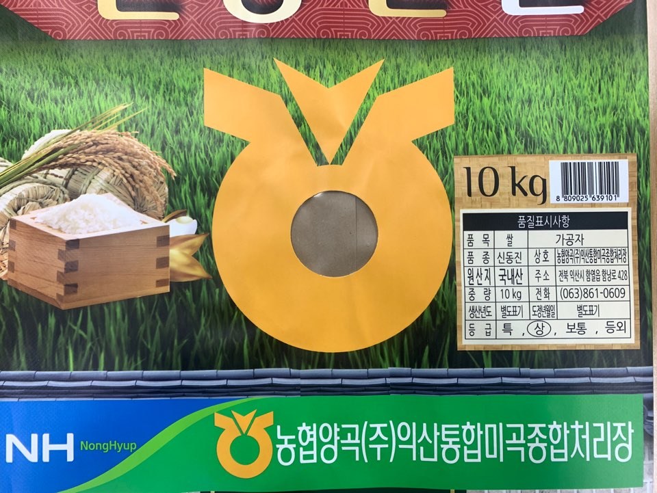 | 품목 또는 명칭 | 쌀 | 포장단위별 내용물의 용량(중량),수량,크기 | 10kg, 1개 |
