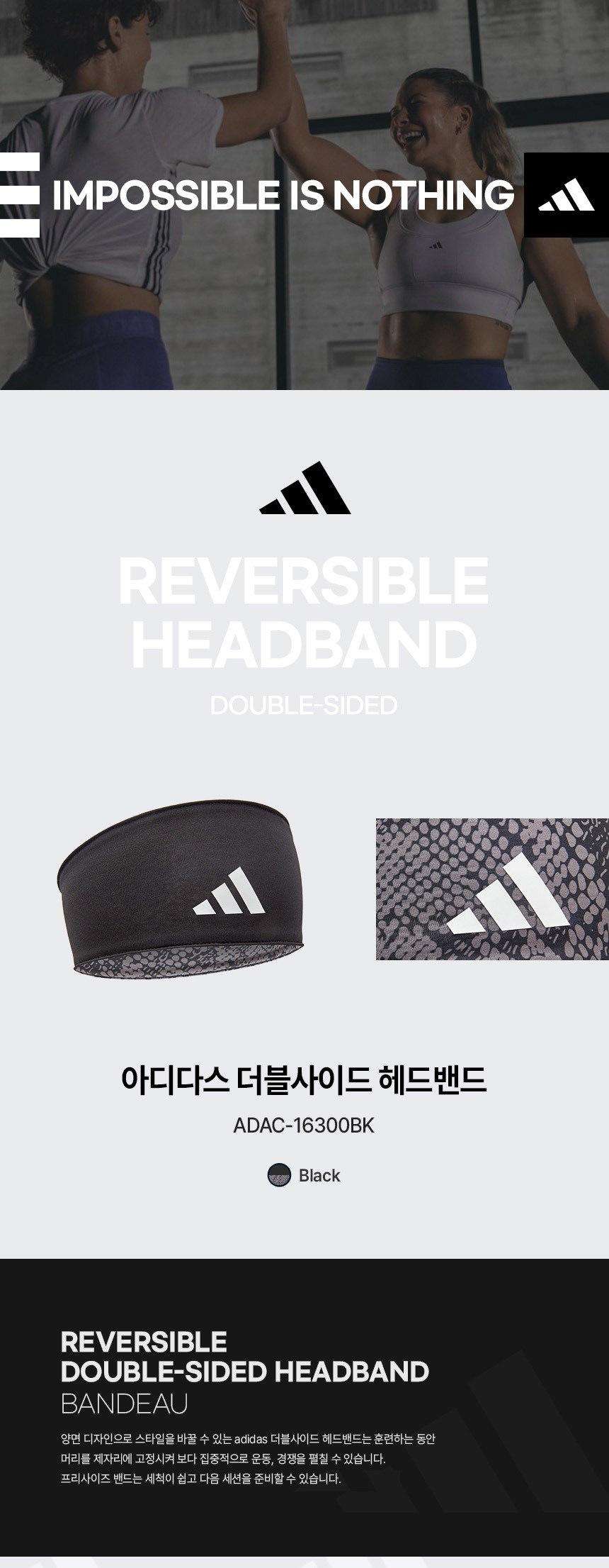 | 품명 및 모델명 | 아디다스 더블사이드 헤어밴드 ADAC-16300BK x 2세트 | KC 인증정보 | 해당없음 |