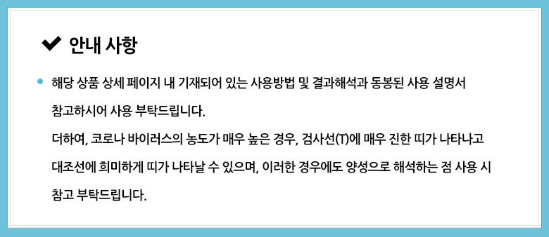| 품명 및 모델명 | 감염체 진단 면역검사시약 / RD12-01D | 허가∙인증∙신고번호 (의료기기법에 따른 허가∙인증∙신고 대상 의료기기에 한함) | 품목허가번호 : 체외 제허 23-589호 |
