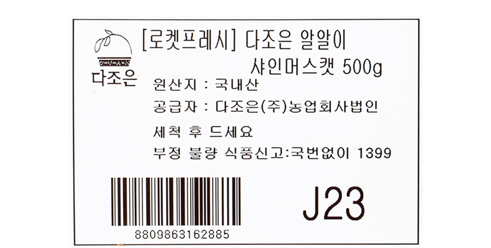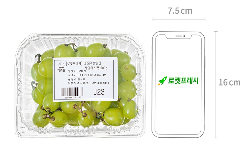 | 품목 또는 명칭 | [로켓프레시] 다조은 알알이 샤인머스켓 500g | 포장단위별 내용물의 용량(중량),수량,크기 | 컨텐츠 참조 |