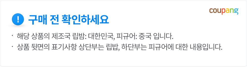 | 사용기한 또는 개봉 후 사용기간 | 본 상품은 해당 물류센터 직발송 상품인 관계로 제조연월일 및 사용기한 정보가 매번 변경되므로 상단 사용기한 정보를 참고해 주세요. | 사용방법 | 컨텐츠 참조 |