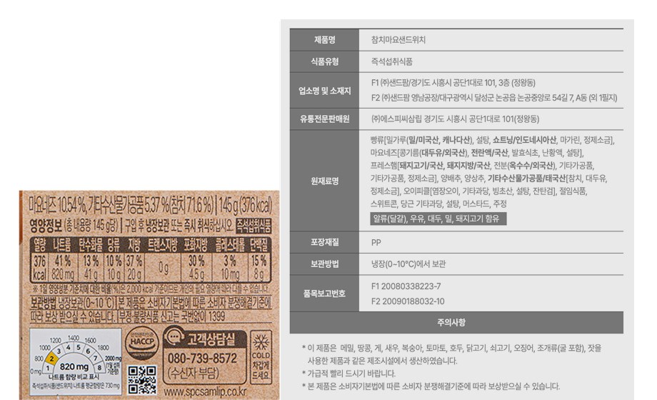 | 제품명 | 참치마요 샌드위치 | 식품의 유형 | 컨텐츠 참조 |