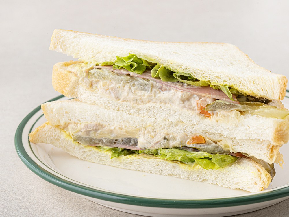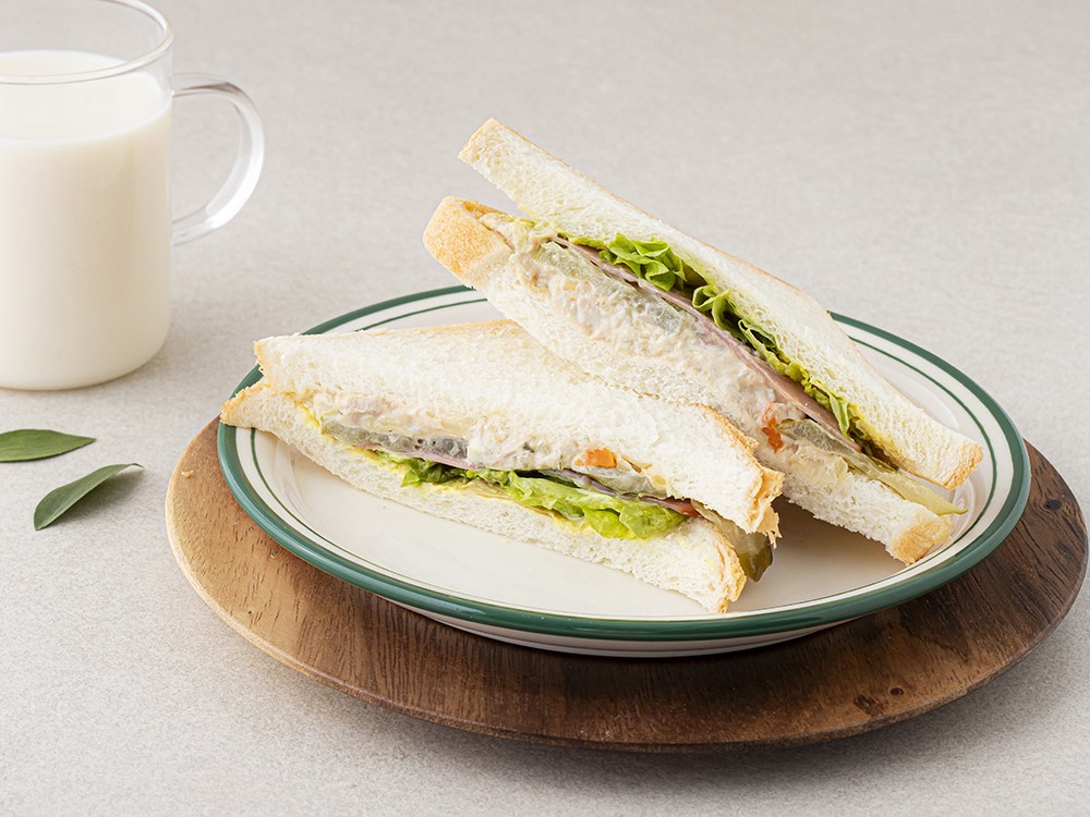 바쁜 하루, 참치마요 샌드위치로 간편하게 끼니를 챙겨보세요. 폭신한 빵 사이에 다채로운 재료들이 겹겹이 쌓여 있지요. 한입 먹어보면 촉촉한 식감과 함께 고소하고 짭짤한 풍미로 입맛을 사로잡는답니다. 주스나 차 등 좋아하는 음료와 함께 즐겨보세요.