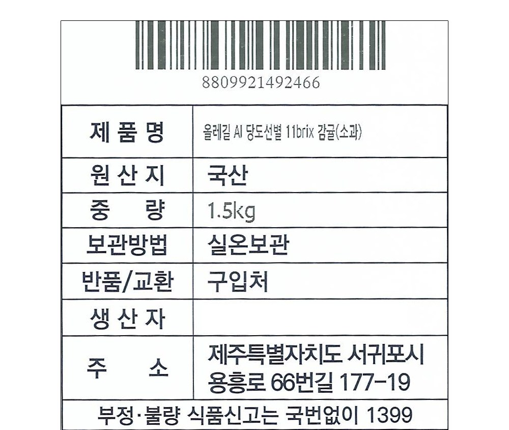 | 제조연월일, 소비기한 또는 품질유지기한 | 업데이트 예정 | 세부 품목군별 표시사항 | 농수산물 : 유전자변형(해당 없음) / 지리적 표시사항(해당 없음) |