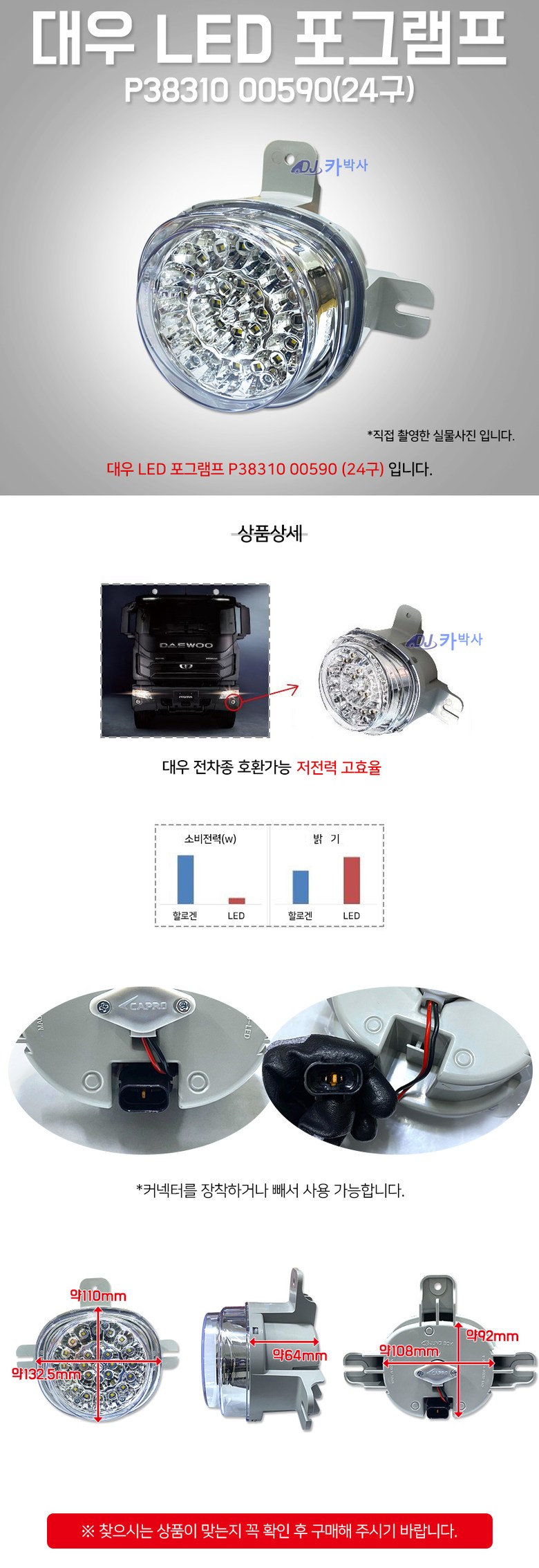 | 품명 및 모델명 | LED대우트럭안개등 | 동일모델 출시년월 | 상품 상세페이지 참조 |