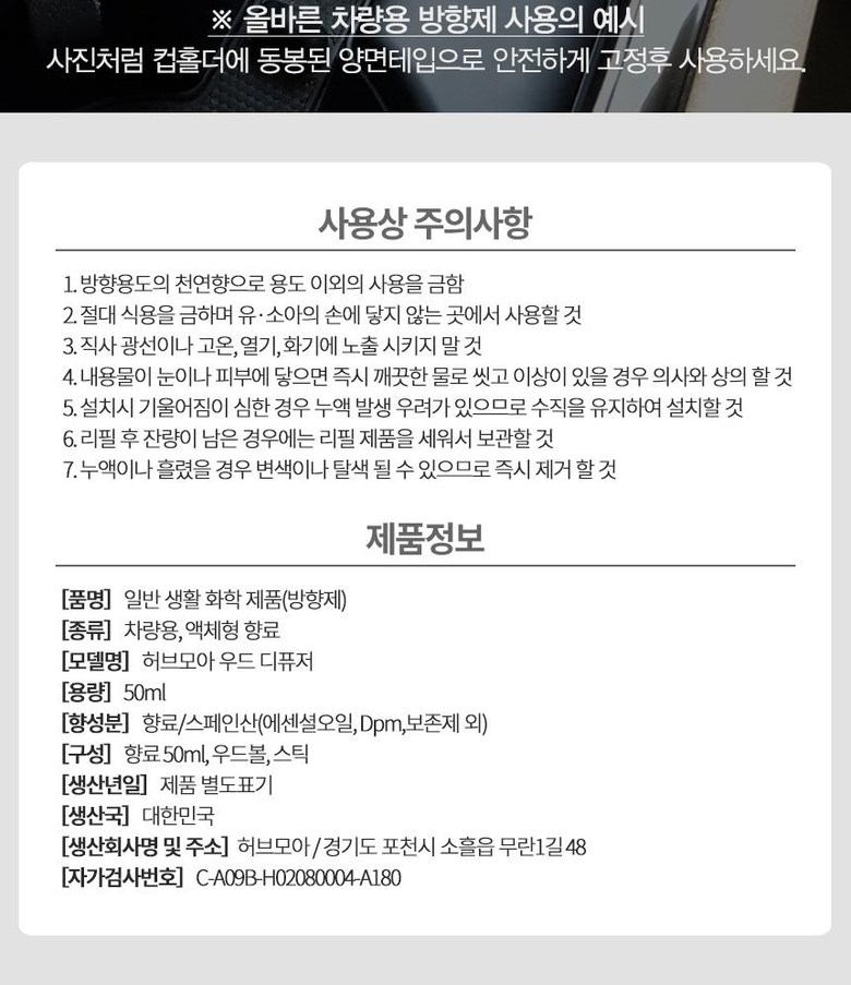 | 품명 및 모델명 | 허브모아 우드 차량용 디퓨저 방향제 | 동일모델 출시년월 | 상세정보참조 |