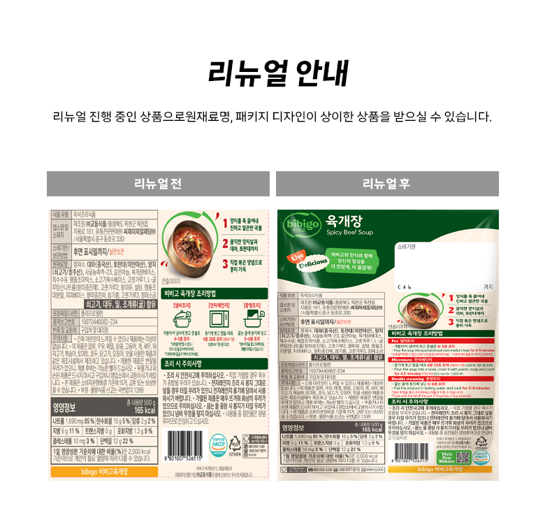 | 제품명 | bibigo비비고육개장 | 식품의 유형 | 컨텐츠 참조 |