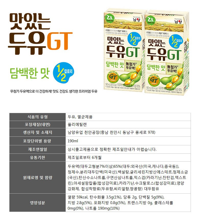 - GT 공법으로 더 맛있게 만든 맛있는 두유 GT