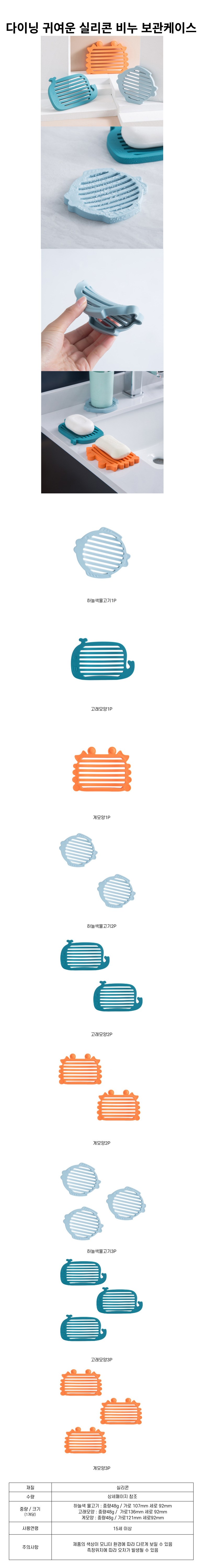 | 품명 및 모델명 | 다이닝 귀여운 실리콘 비누 보관케이스 고래모양3P | 인증/허가 사항 | 해당없음 |
