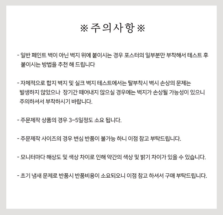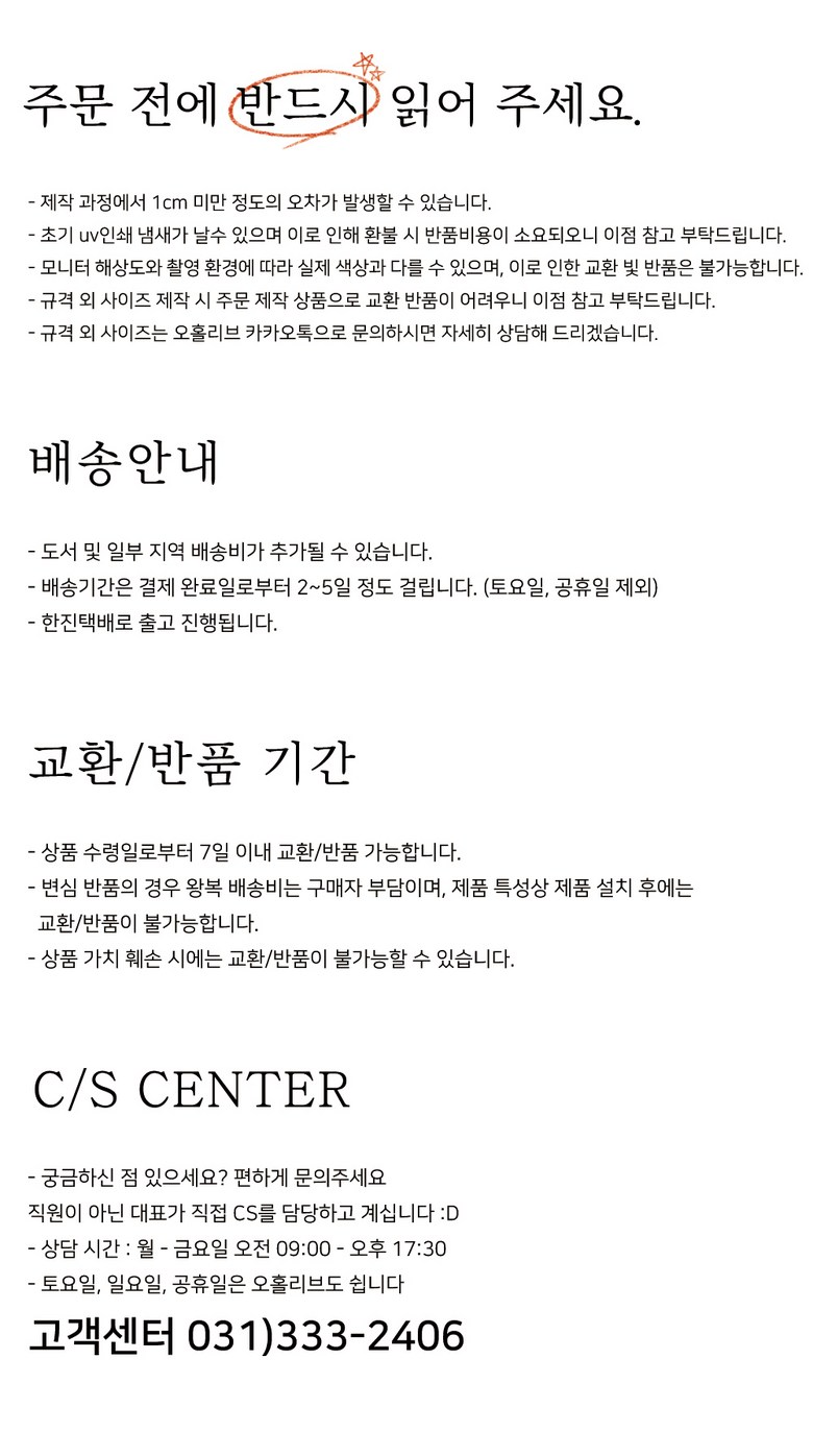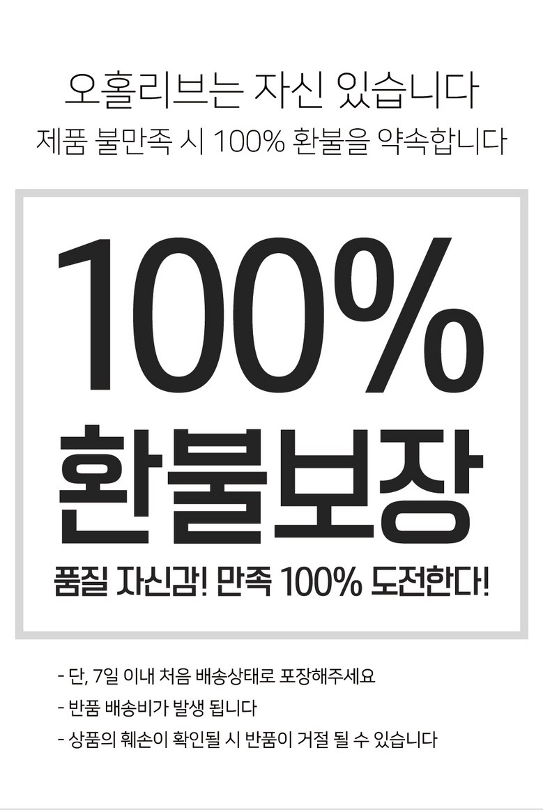 - ㆍ모니터 해상도의 차이로 인해 색상이나 이미지가 실제와 달라, 고객이 단순 변심으로 교환/반품을 무료로 요청하는 경우
