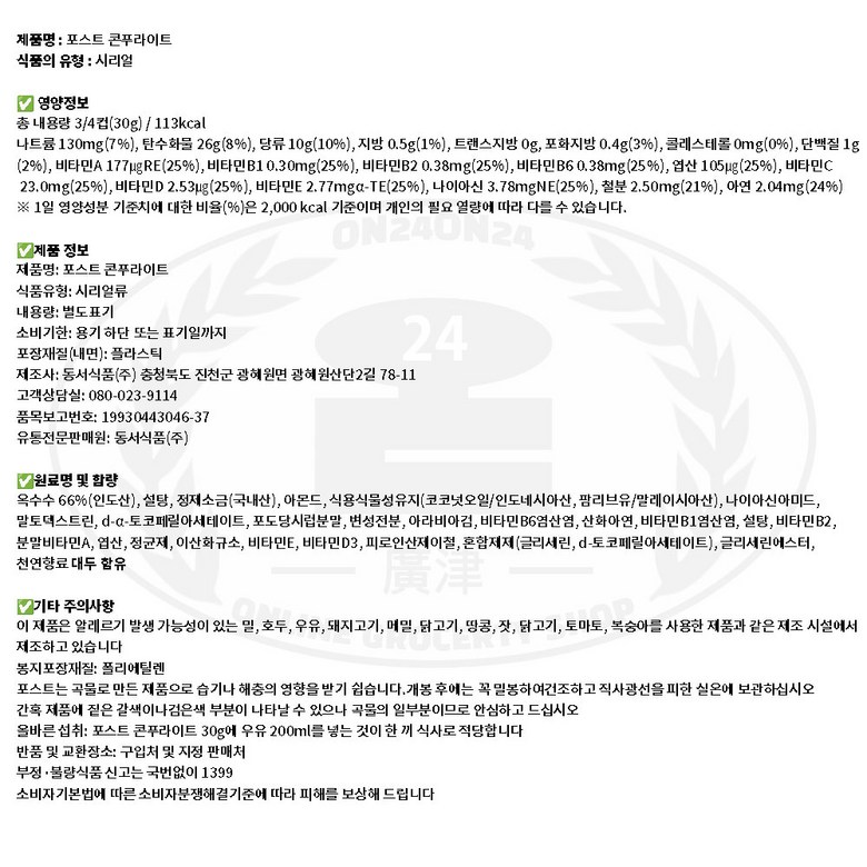 - 시리얼 종류: 곡물/일반용