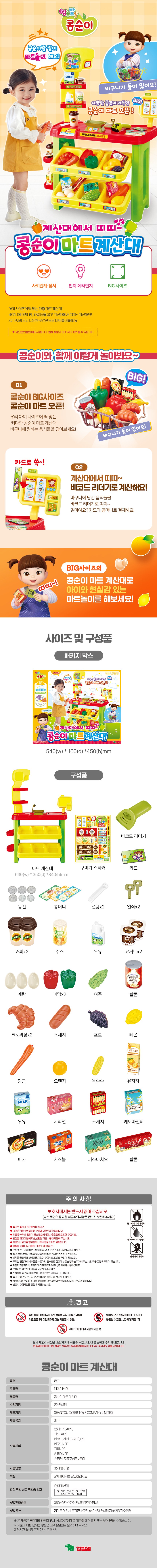 | 품명 및 모델명 | 콩순이 마트 계산대 세트 | KC 인증정보 | CB061R7625-3001 |