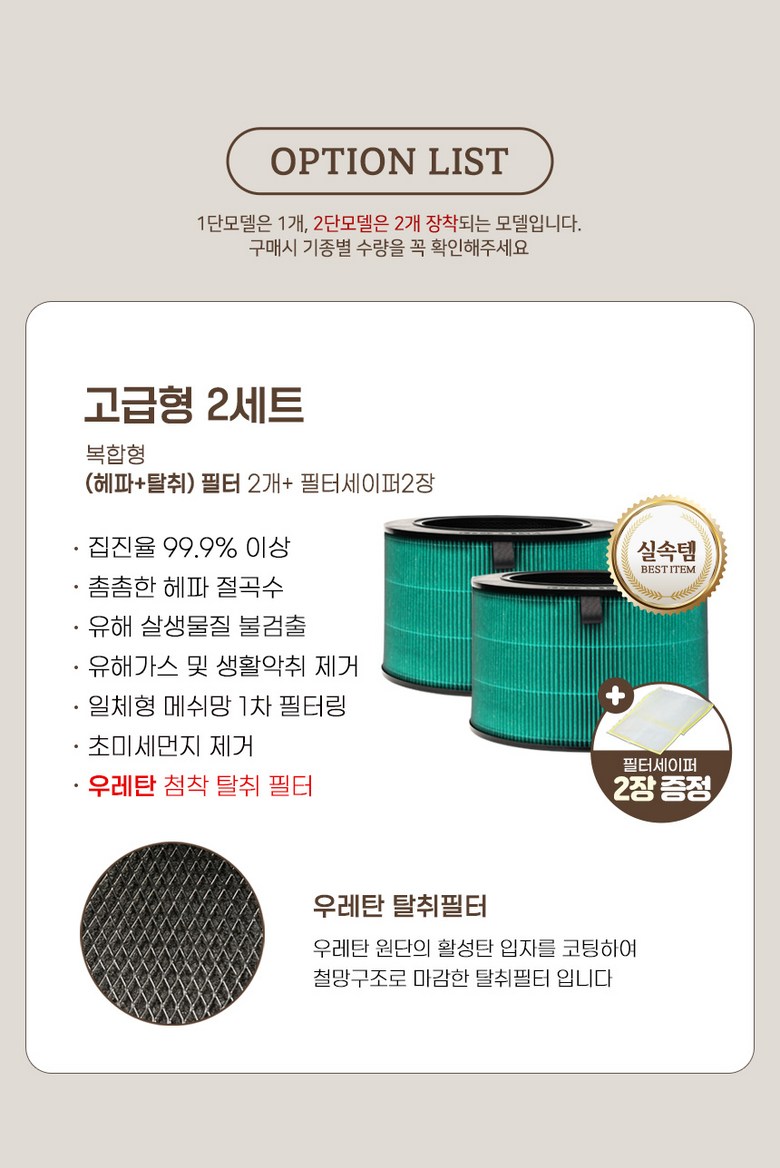 - 공기청정기 필터 종류: 집진+탈취필터