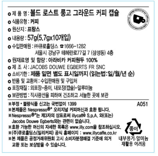 | 생산자 및 소재지 | 컨텐츠 참조 | 제조연월일, 소비기한 또는 품질유지기한 | 소비기한(또는 유통기한) : 2026년 05월 01일 이거나 그 이후인 상품 제조년월일 : 2025년 06월 06일 이후인 제조상품 |