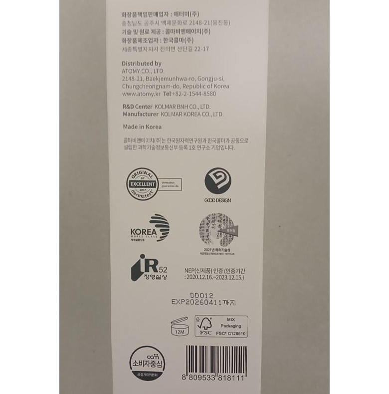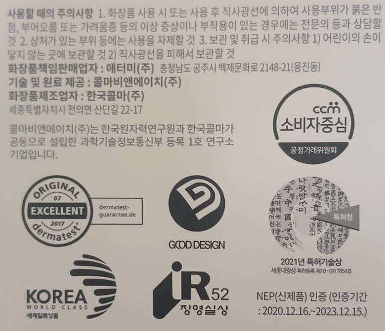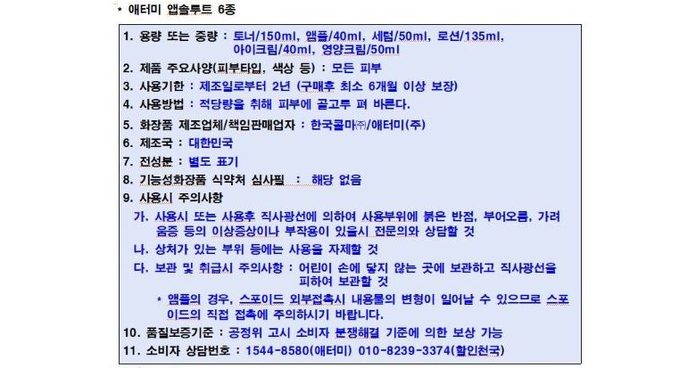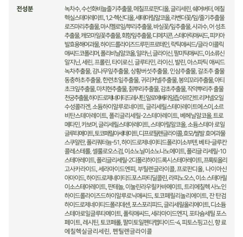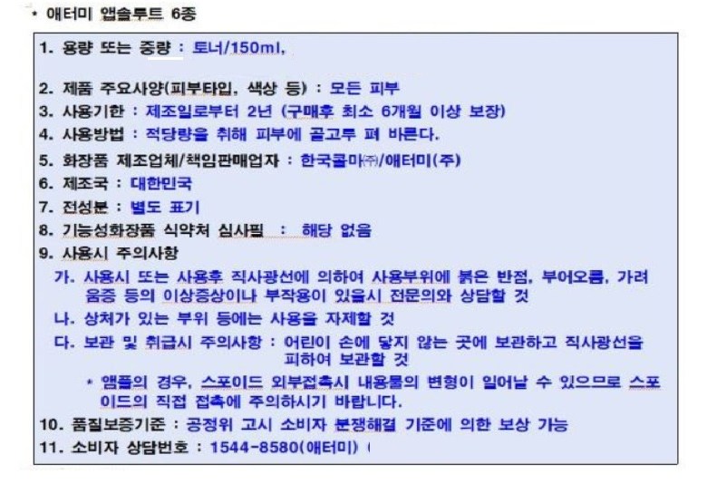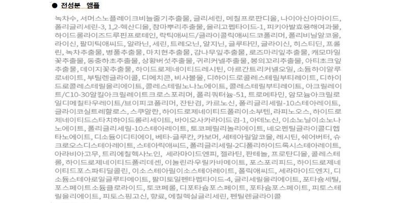 | 화장품제조업자, 화장품책임판매업자 및 맞춤형화장품판매업자 | 상품 상세페이지 참조 | 제조국 | 상품 상세페이지 참조 |