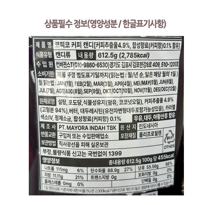 - 캔디류 맛/향: 커피