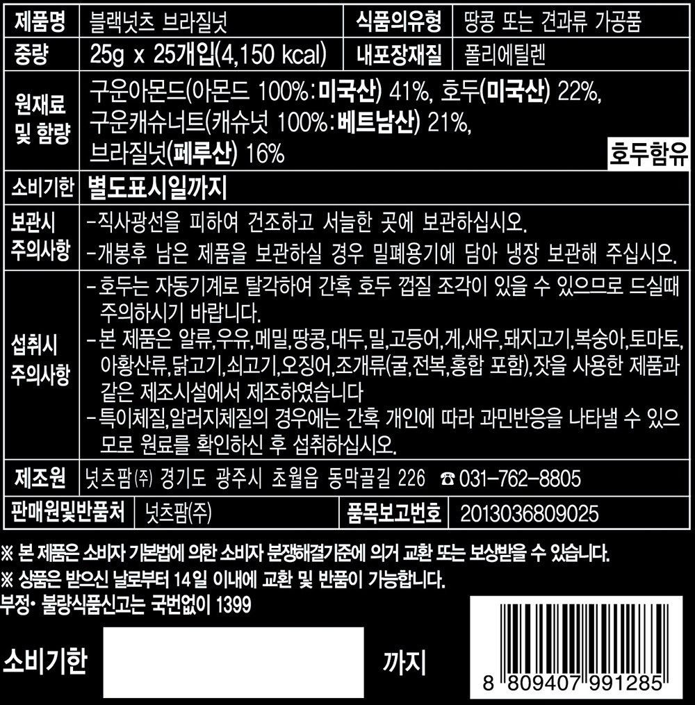 - 견과 종류: 혼합견과(믹스넛)