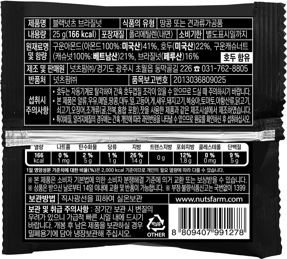 | 포장단위별 내용물의 용량(중량), 수량 | 25g x 50개 | 원재료명 및 함량 | 컨텐츠 참조 |