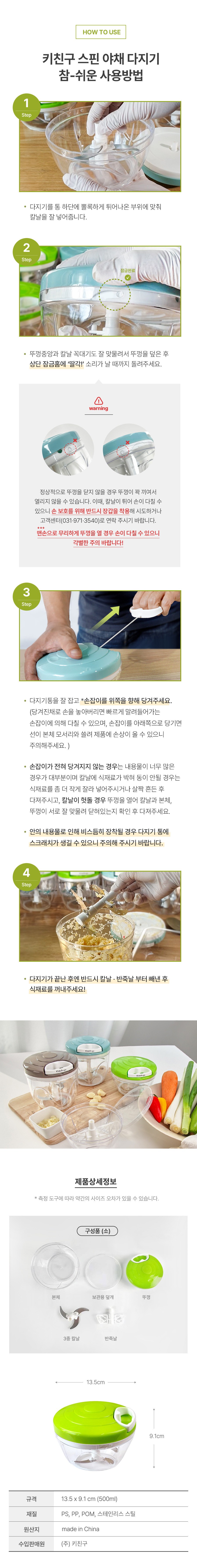 | 품명 및 모델명 | 키친구 스핀 야채 다지기 | 재질 | 컨텐츠 참조 |