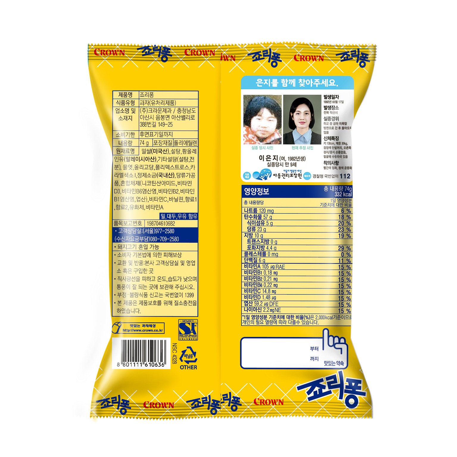 | 포장단위별 내용물의 용량(중량), 수량 | 74g, 6개 | 원재료명 및 함량 | 컨텐츠 참조 |
