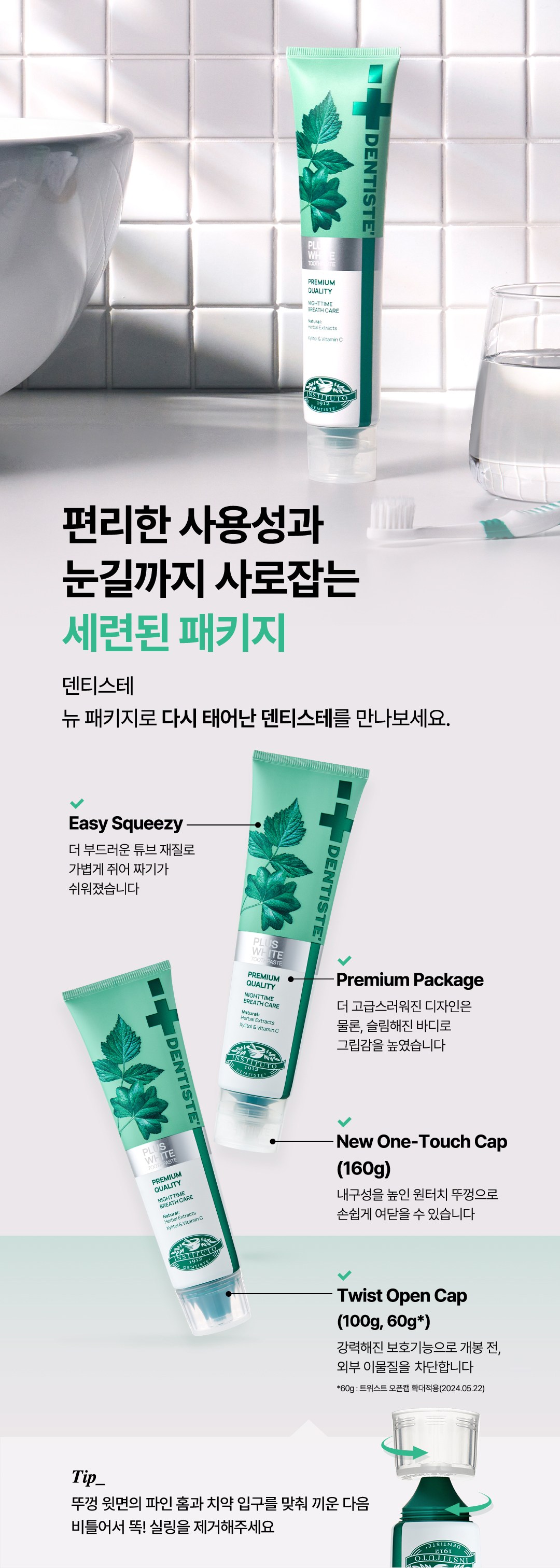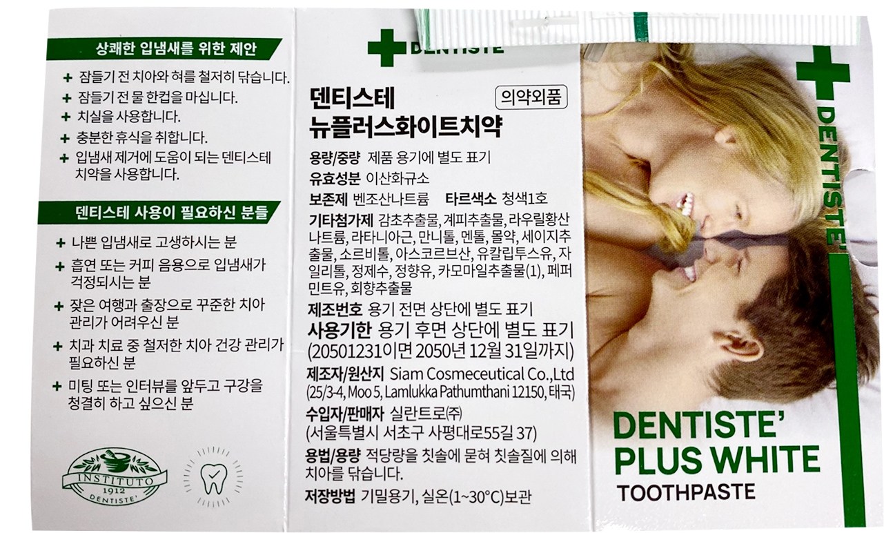 | 품명 및 모델명 | 덴티스테뉴플러스화이트치약(이산화규소) | 인증/허가 사항 | 의약외품 |