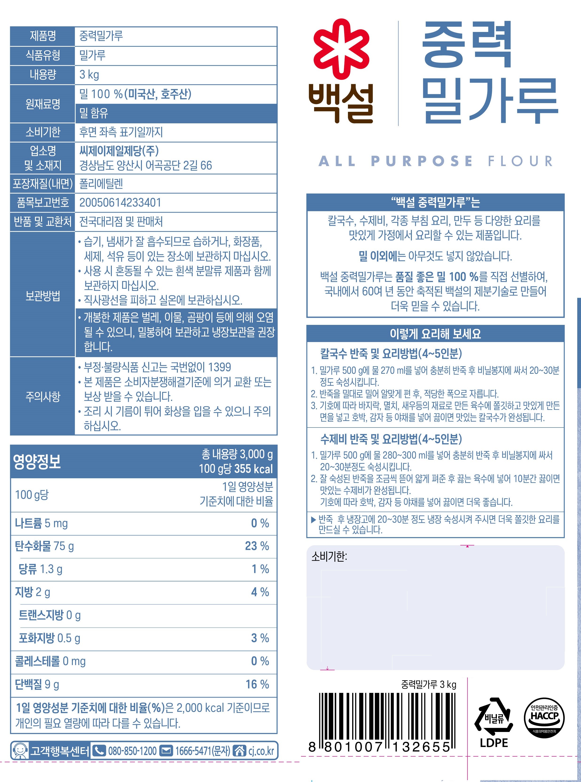 | 포장단위별 내용물의 용량(중량), 수량 | 3kg x 1개 | 원재료명 및 함량 | 컨텐츠 참조 |