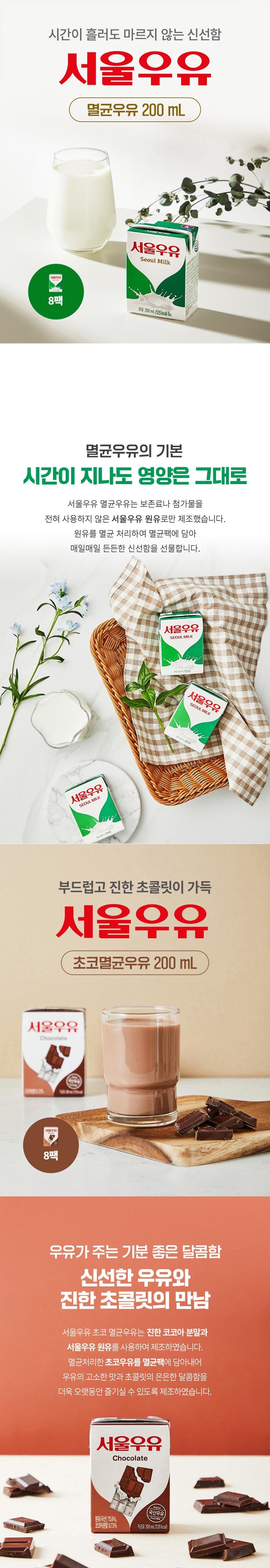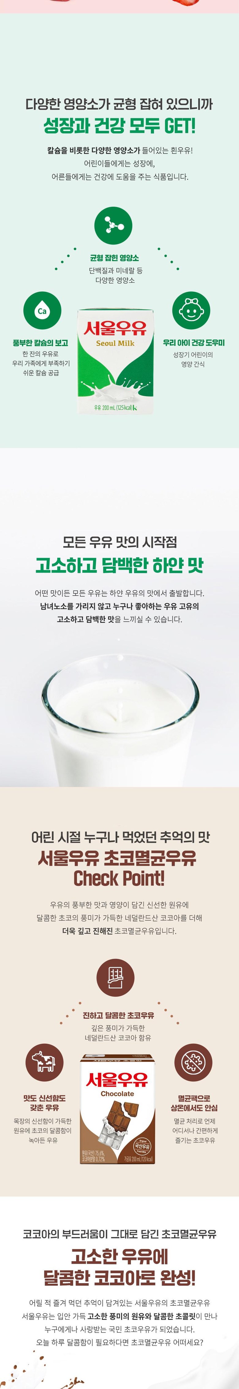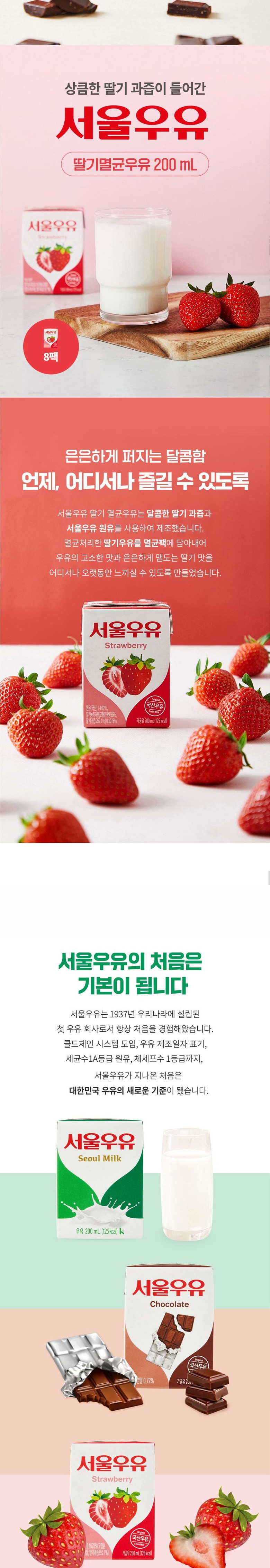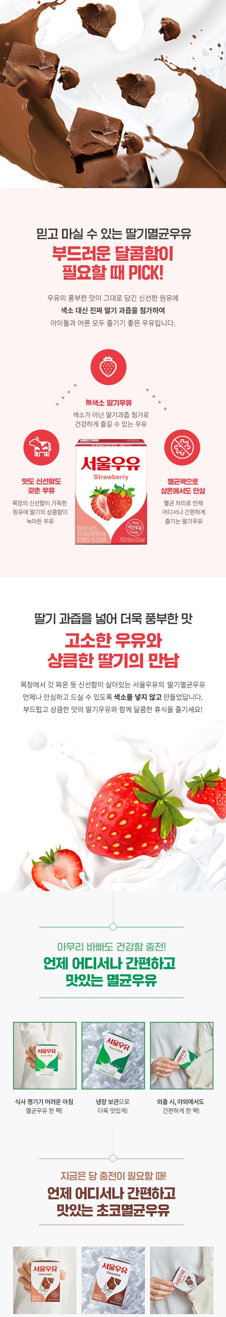 | 제품명 | 서울우유 멸균우유 + 초코우유 + 딸기우유 (각 8개씩 총 24입) | 식품의 유형 | 상품 상세페이지 참조 |