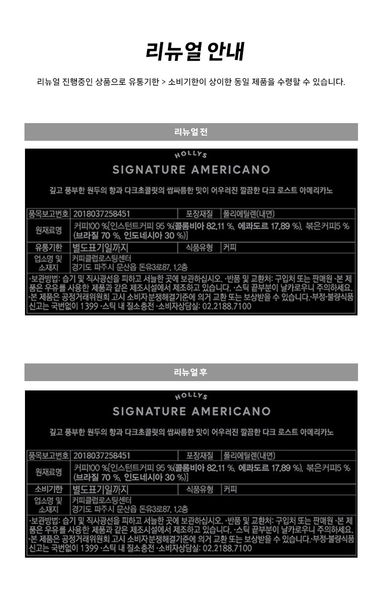 | 제품명 | 할리스 시그니처 아메리카노 미니 | 식품의 유형 | 컨텐츠 참조 |