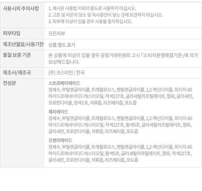 | 용량(중량) | 9g | 제품 주요 사양 | 모든 피부용 |