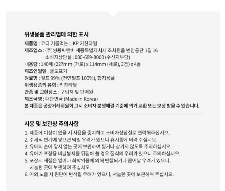 다만, 판매자의 제시사항이 관계법령보다 소비자에게 유리한 경우에는 판매자 제시사항이 적용됩니다.
