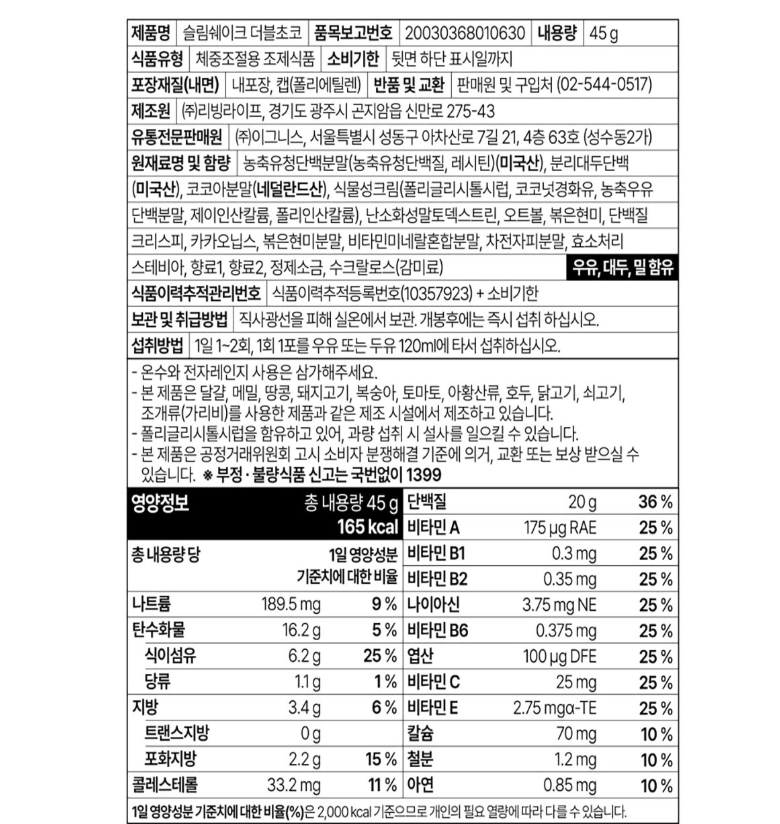| 제품명 | 상품 상세페이지 참조 | 식품의 유형 | 상품 상세페이지 참조 |