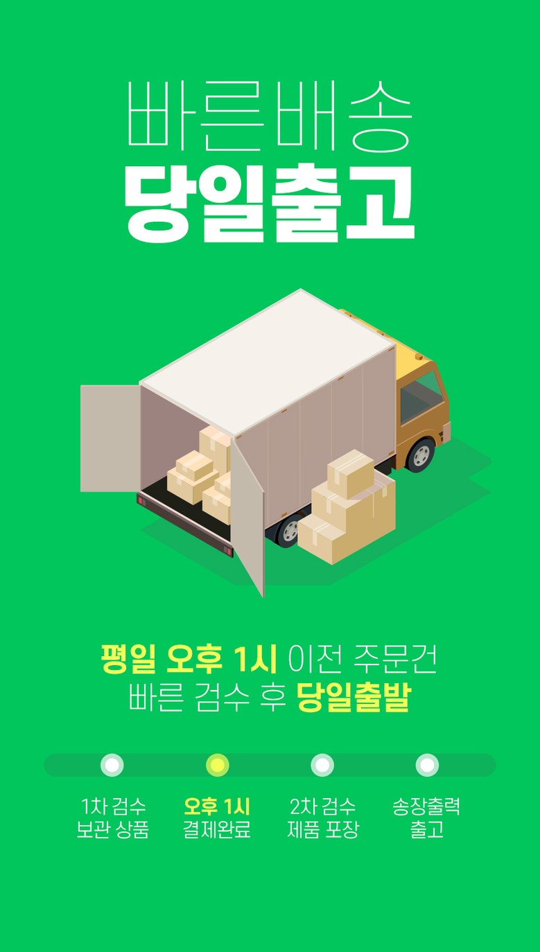 | 배송기간 | ㆍ도서산간 지역 등은 배송에 3-5일이 더 소요될 수 있습니다. - 천재지변, 물량 수급 변동 등 예외적인 사유 발생 시, 다소 지연될 수 있는 점 양해 부탁드립니다. | ||