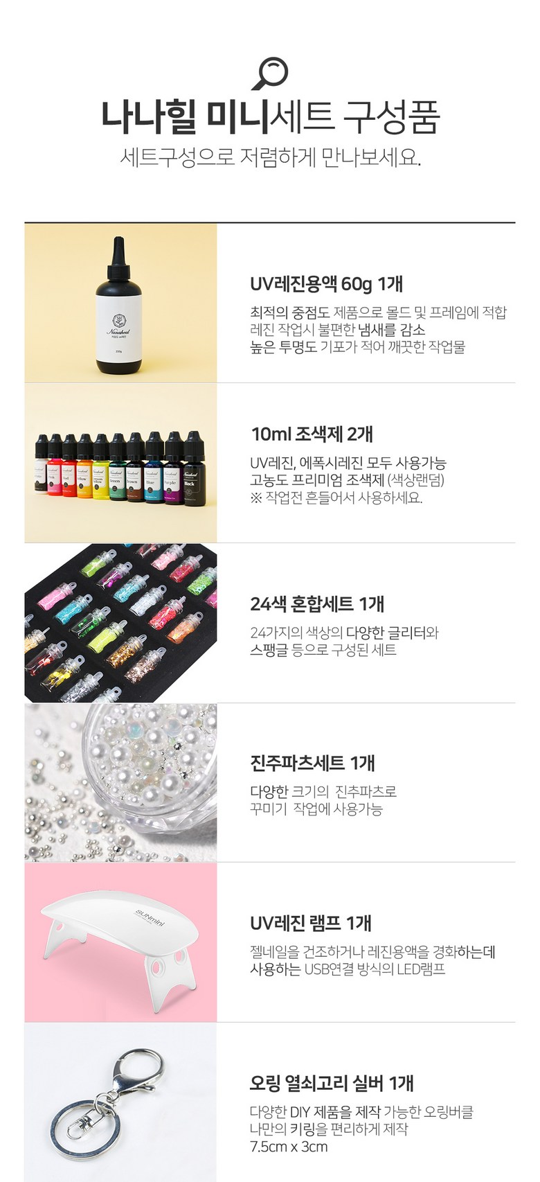 색상 × 수량: UV레진세트미니 실버(램프제외) × 1개