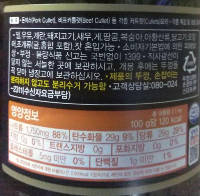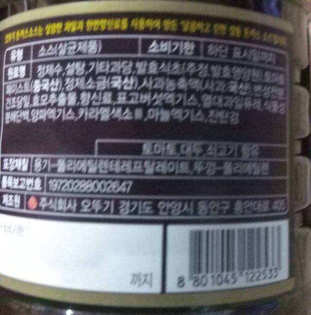 | 제품명 | 오뚜기 돈까스소스 | 식품의 유형 | 소스류(살균제품) |