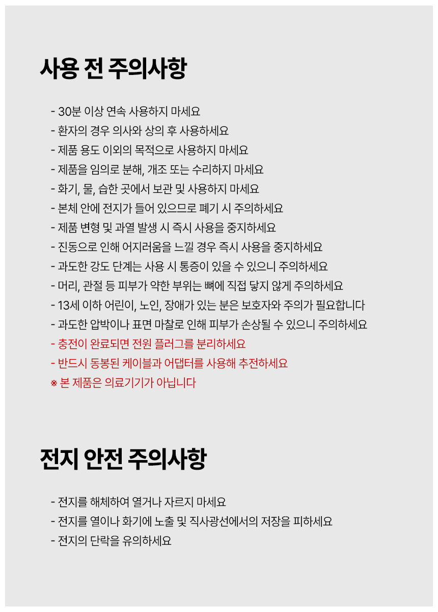- 안마기 사용부위: 다용도