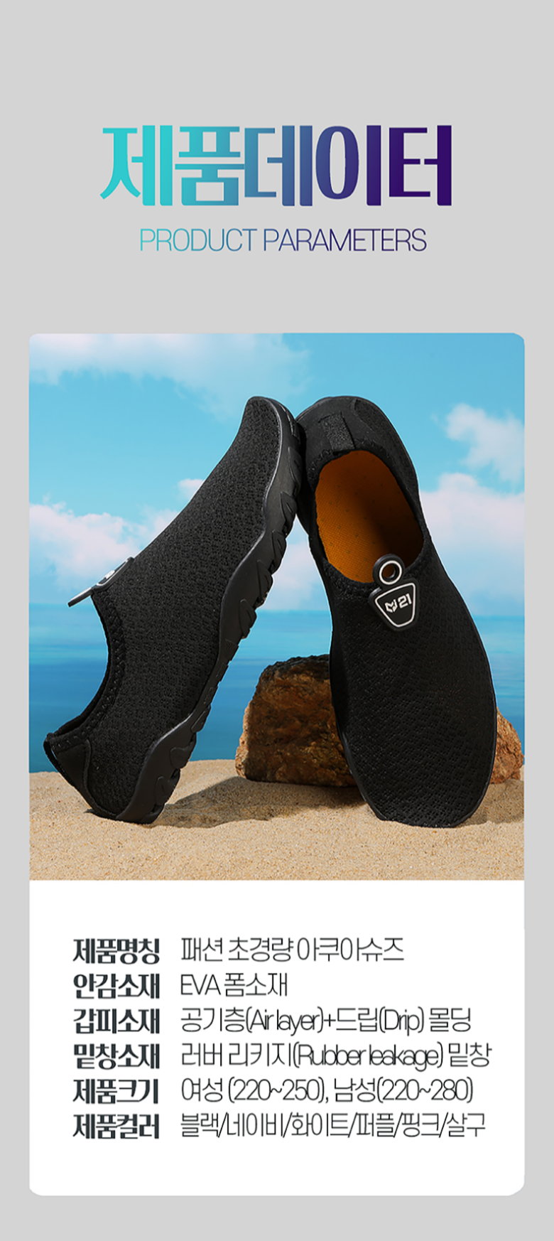 | 품명 및 모델명 | MJ21 커플 아쿠아슈즈 워터슈즈 물놀이 신발 | 인증/허가 사항 | 상품 상세페이지 참조 |