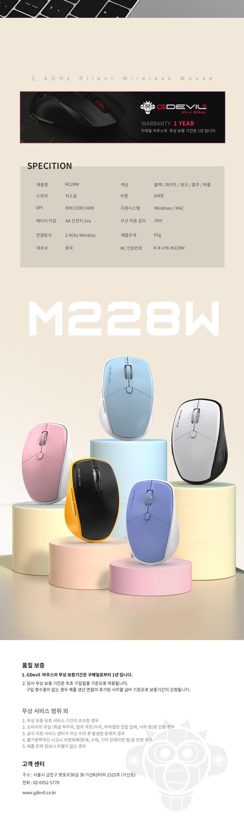 | 품명 및 모델명 | 무선마우스 / M228W / 퍼플 | KC 인증정보 | R-R-vTK-M228W |