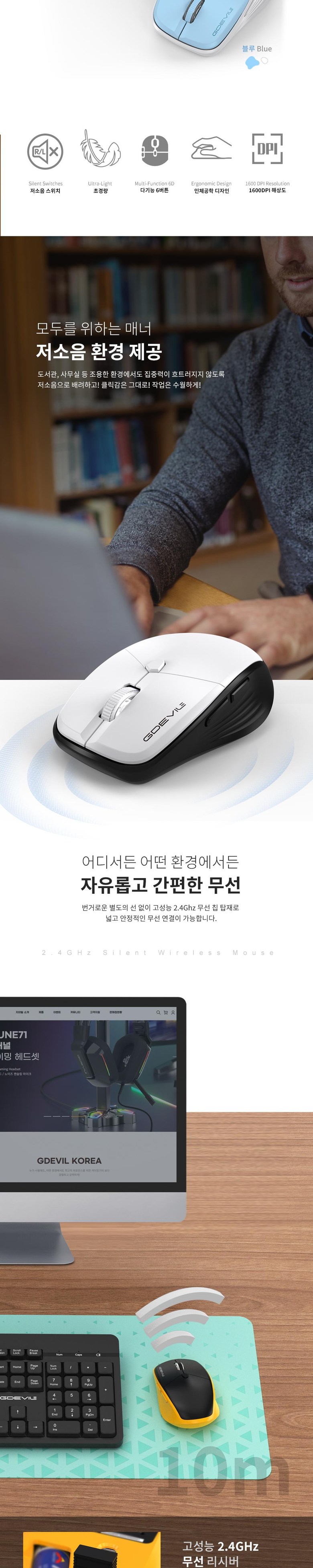 지데빌 2.4GHz 저소음 사무용 무선 마우스