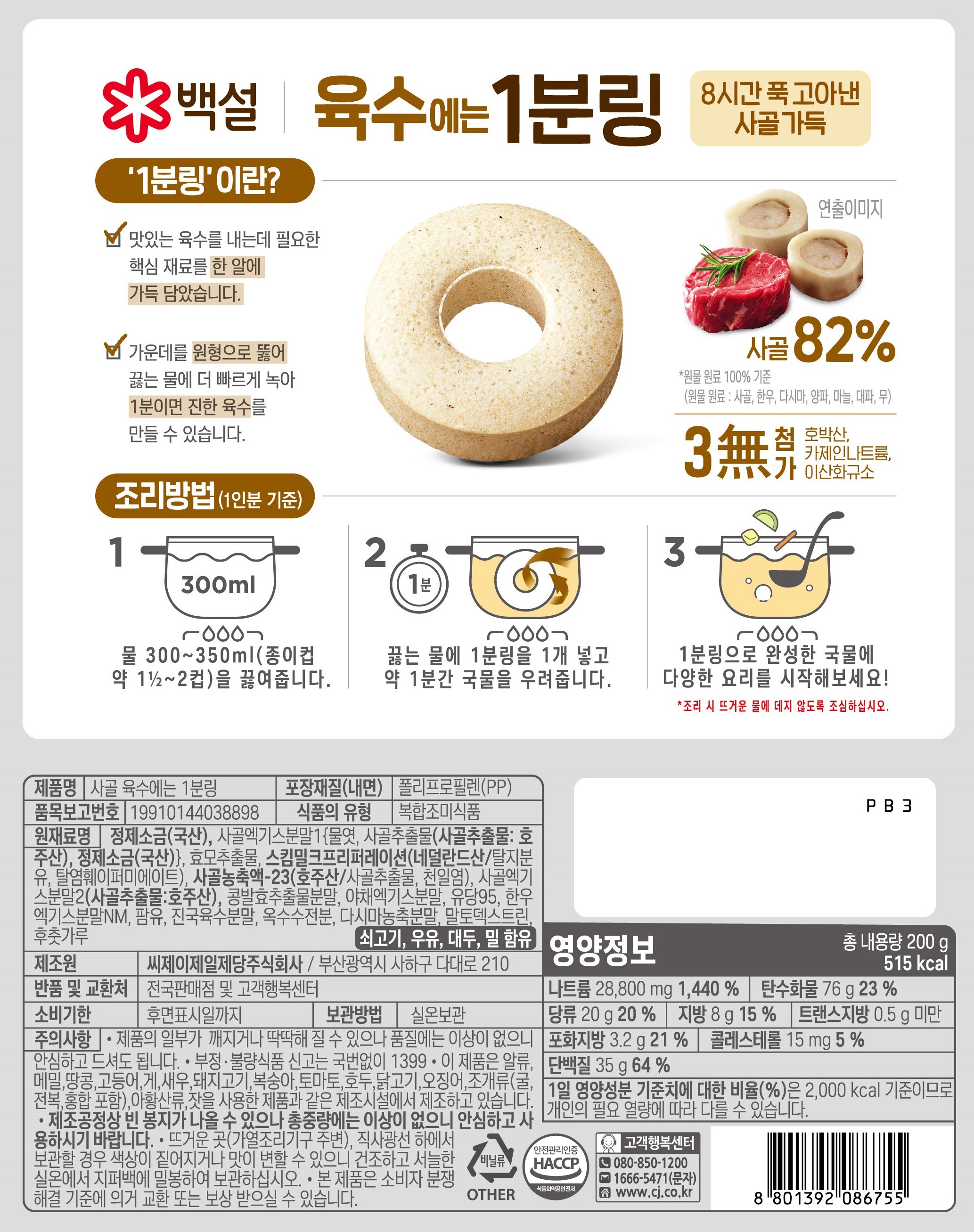 | 포장단위별 내용물의 용량(중량), 수량 | 200g, 1개 | 원재료명 및 함량 | 컨텐츠 참조 |