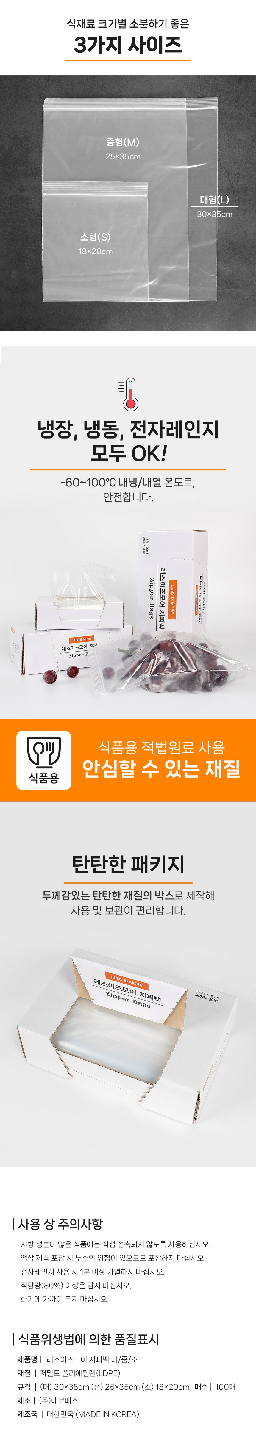 | 품명 및 모델명 | 레스이즈모어 지퍼백 (중) | 재질 | 컨텐츠참조 |