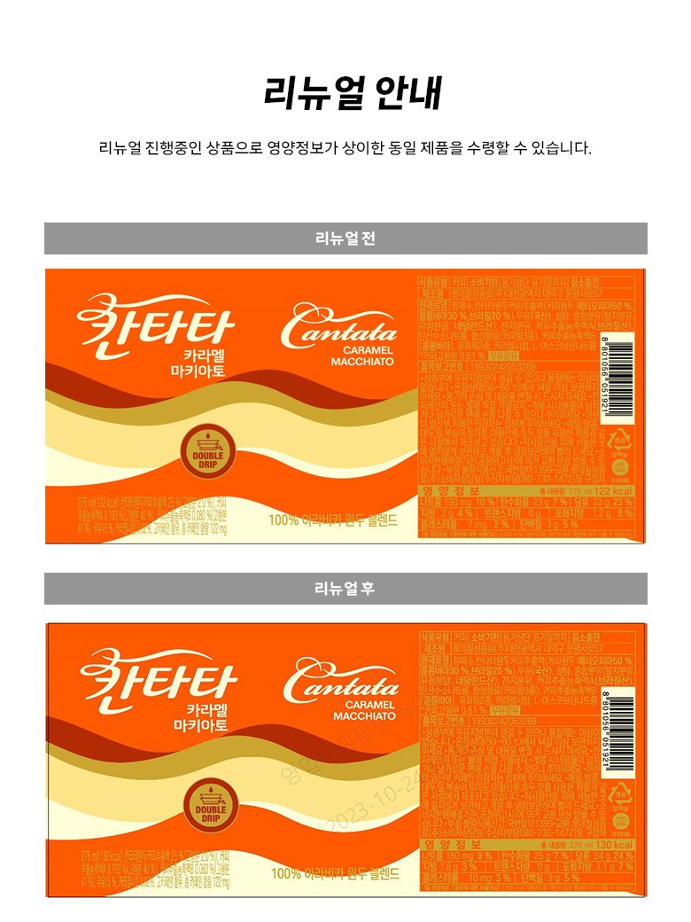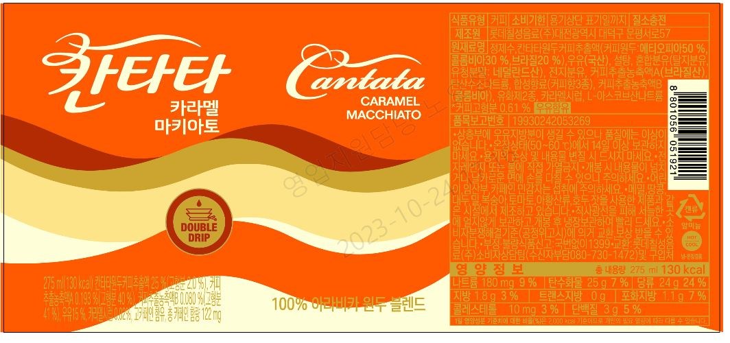 | 제품명 | 칸타타 카라멜마키아토 | 식품의 유형 | 컨텐츠 참조 |